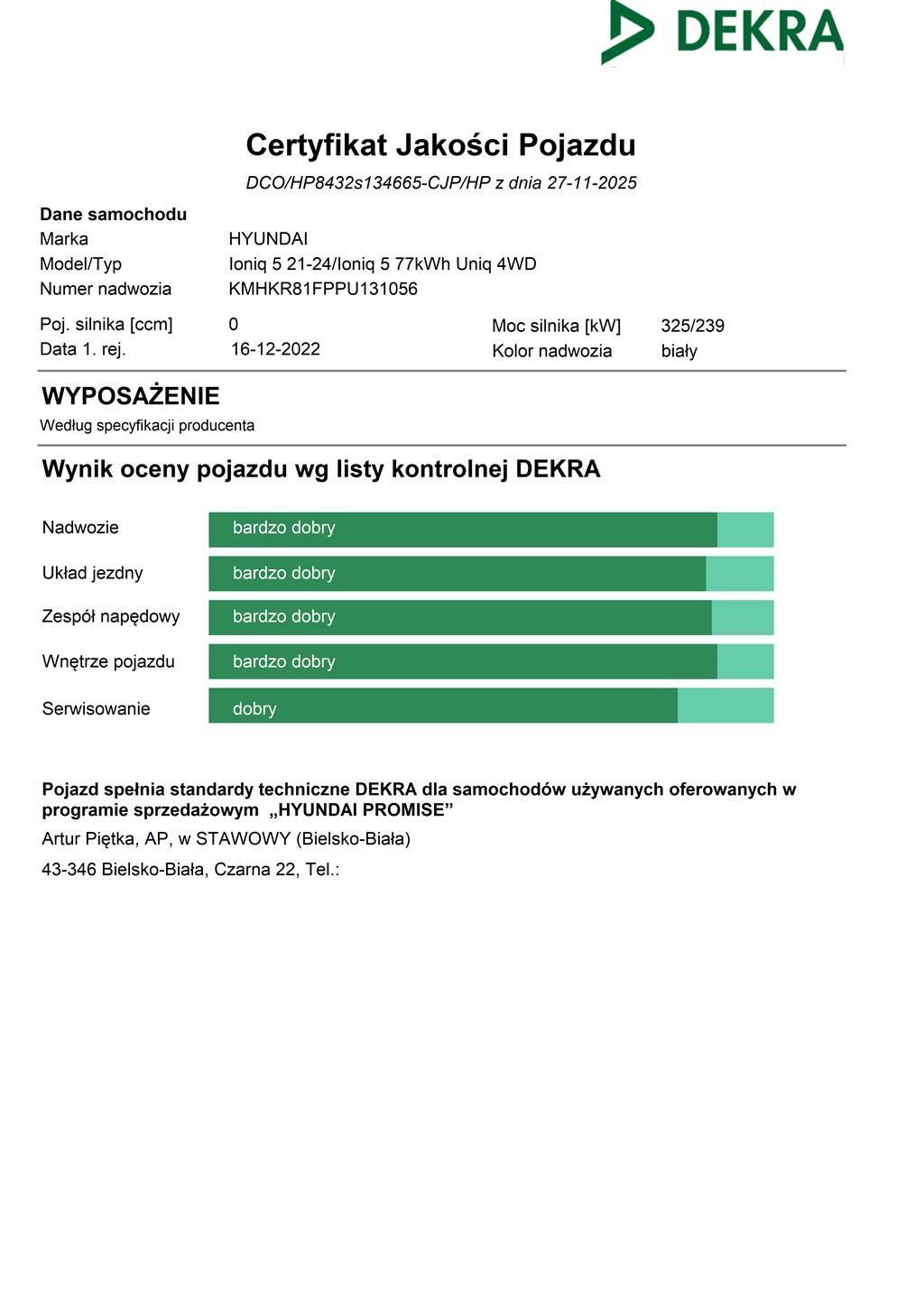 - Certyfikat Jakości z kontrolą 100 punktów pojazdu
